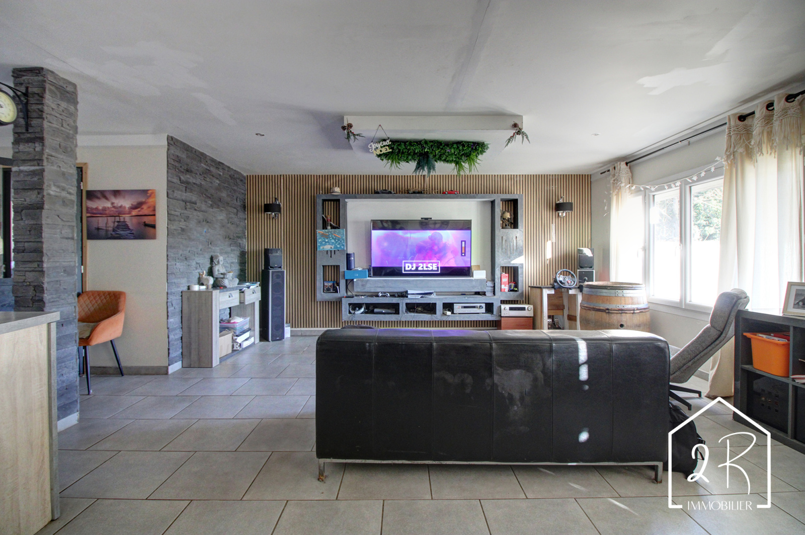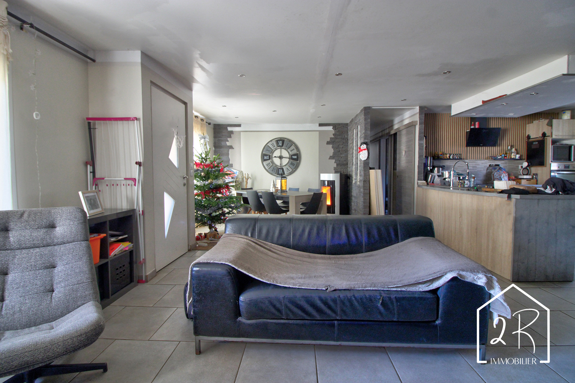 - Espace séjour, salle à manger, cuisine d'environ 60 m², lumineux et convivial avec accès à un cellier d'environ 4 m²