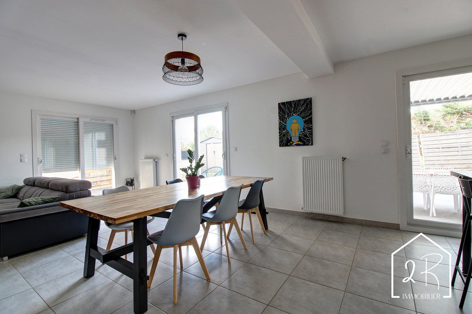 - Accès direct au garage carrelé et isolé de 20,8 m²