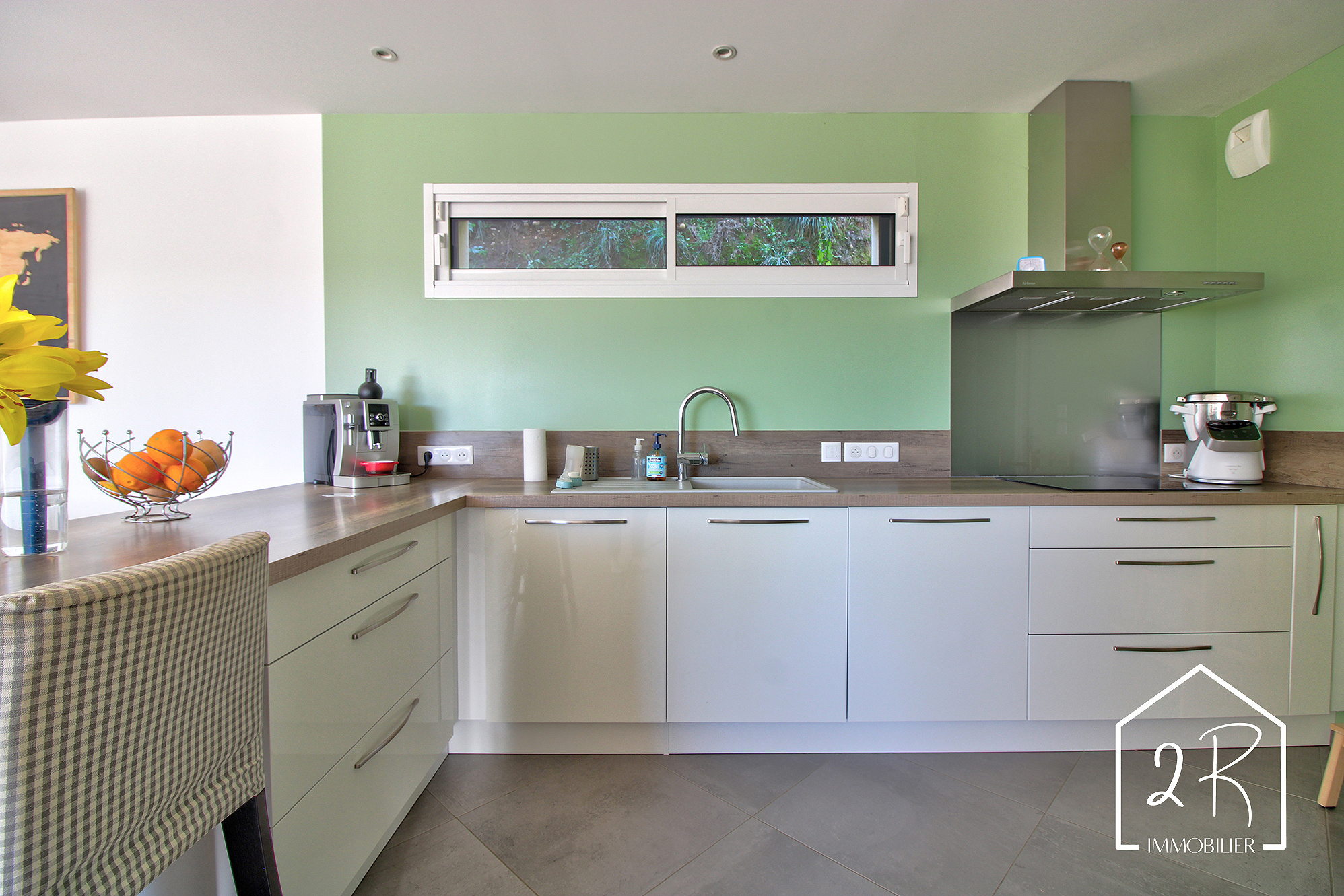 Moderne, lumineuse et soigneusement entretenue, elle offre un cadre de vie fonctionnel, avec notamment une suite parentale au rez-de-chaussée et un bel espace de vie ouvert sur l’extérieur coté sud avec une jolie vue dégagée.