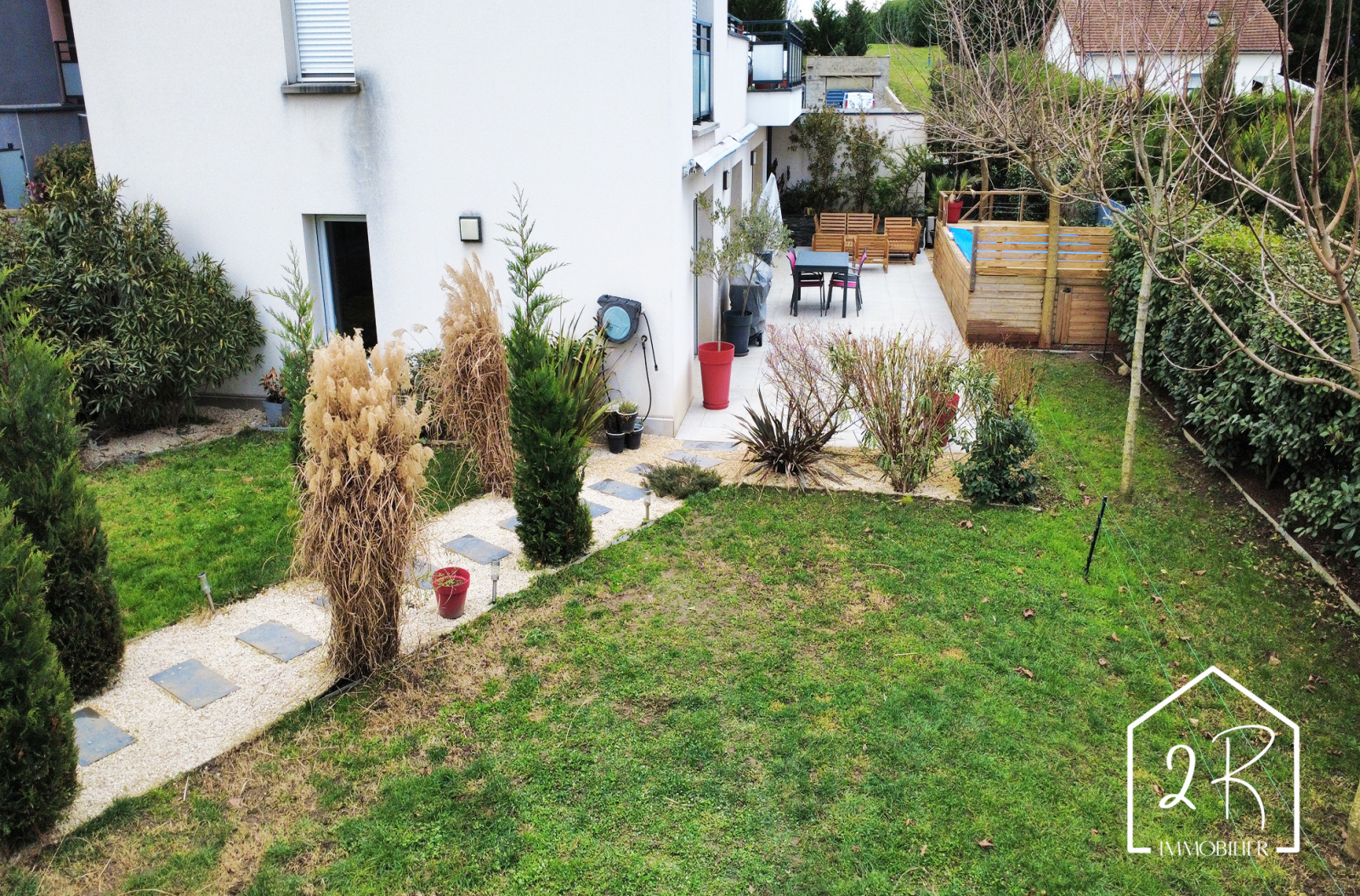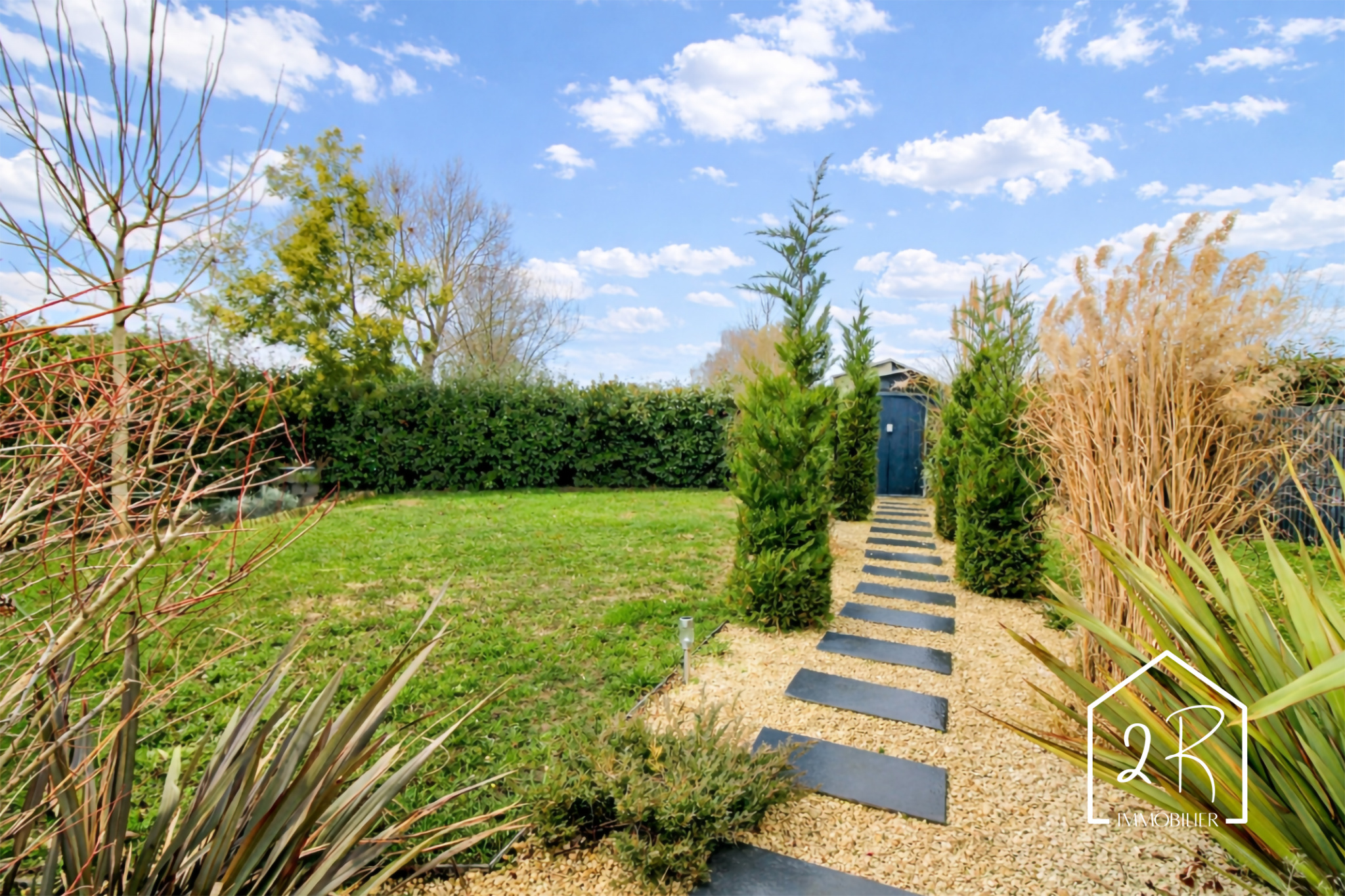 L’appartement bénéficie d’une terrasse de 50 m² et d’un jardin entièrement clos et arboré de 200 m², avec cabane de jardin.